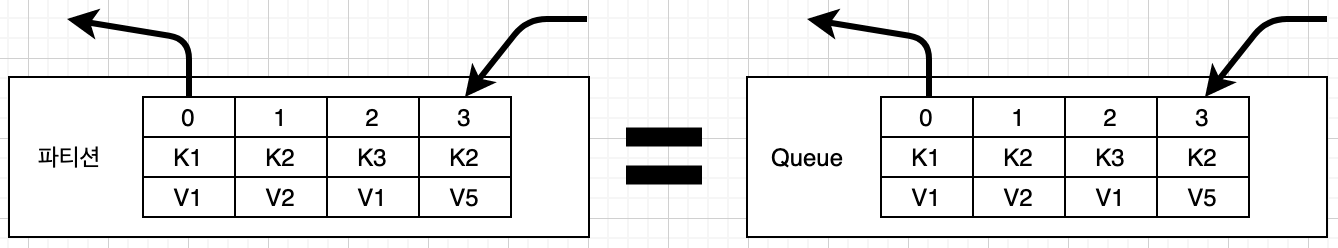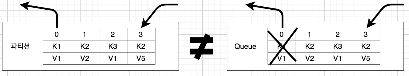 하지만 큐는 데이터를 POP하면 레코드를 삭제하지만 카프카에서는 보관하고 있습니다.