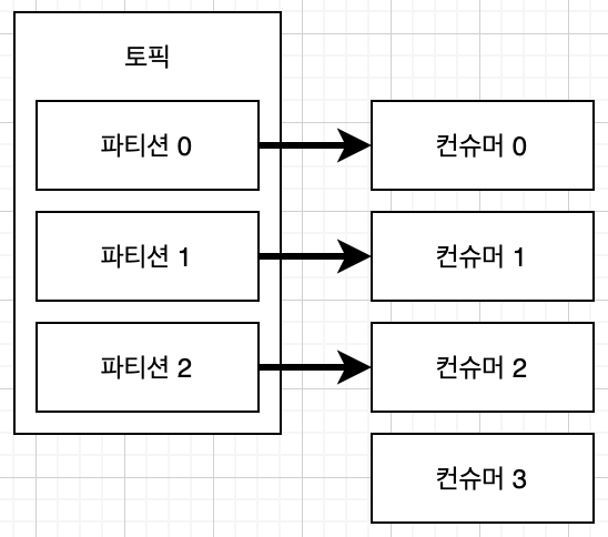 컨슈머 그룹에서 컨슈머 개수가 파티션의 개수보다 많으면 컨슈머는 아무런 동작을 하지 않습니다.