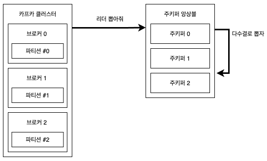 토픽의 여러 파티션의 데이터를 하나의 컨슈머로 가져올 수 있습니다.