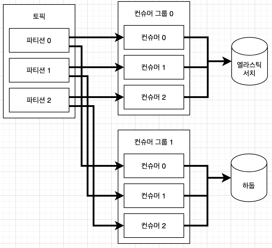 컨슈머 그룹이 다르면 그룹별로 파티션의 데이터를 가져올 수 있습니다.