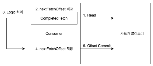 Fetcher 클래스 내부의 CompletedFetch 클래스가 존재합니다. 이 CompletedFetch 클래스의 nextFetchOffset 변수를 통해 Offset을 관리하고 있습니다.