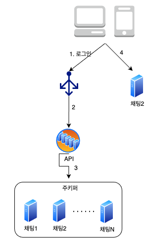 - 인증 처리 완료 후 Service Discovery 동작 후 채팅 서버를 찾음