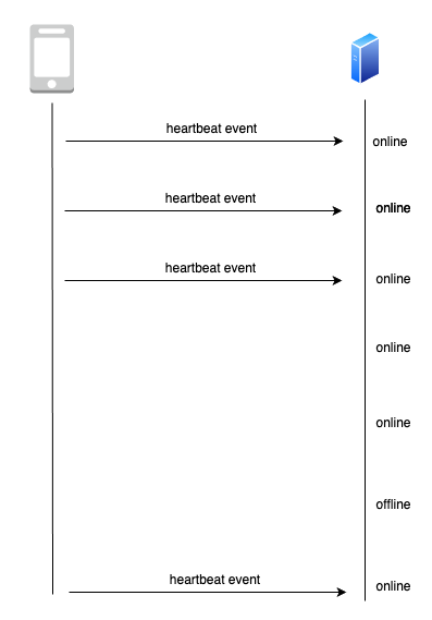 - 일정 주기 동안 event가 들어오지 않아도 online 상태 유지