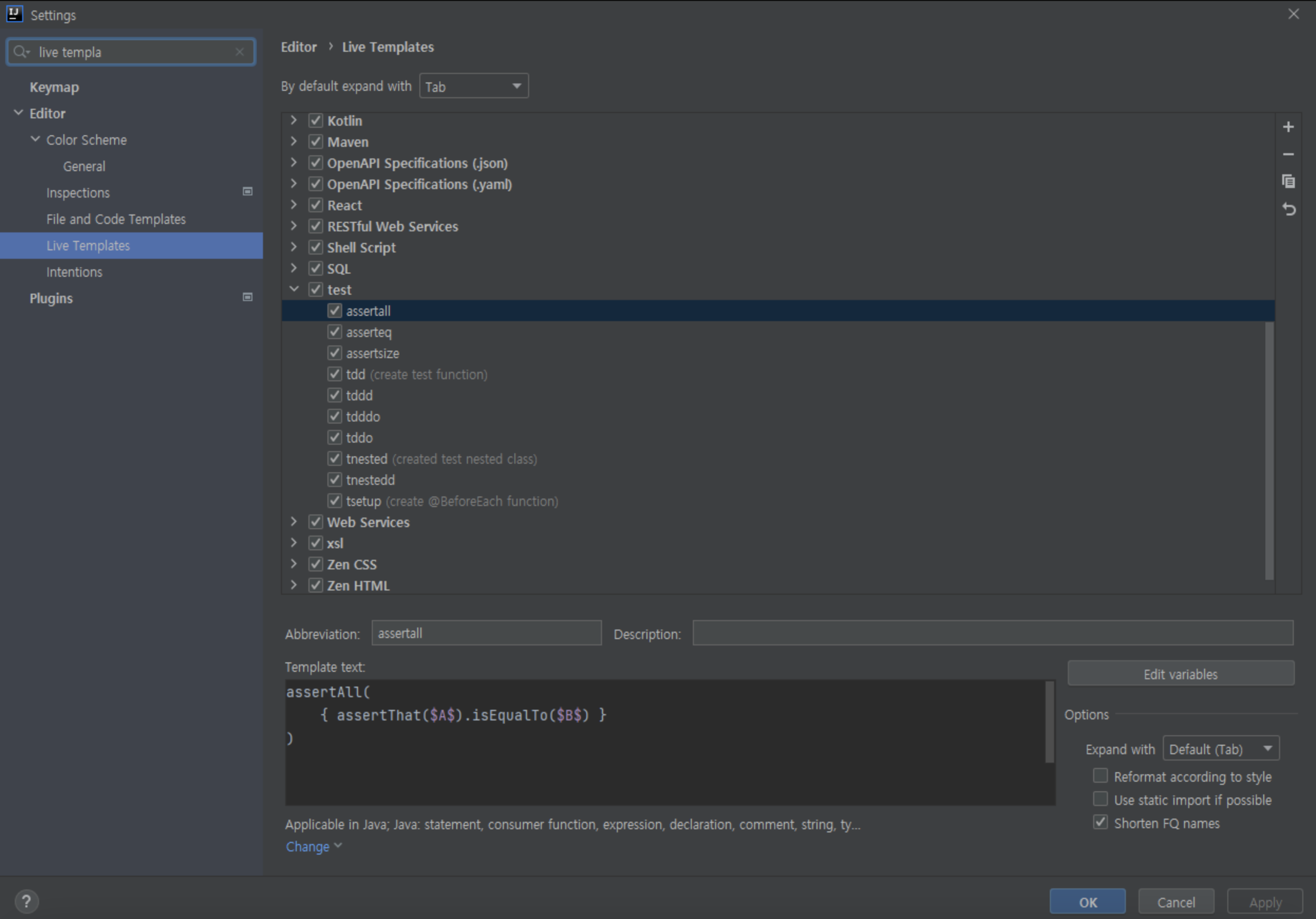 - Live Templates