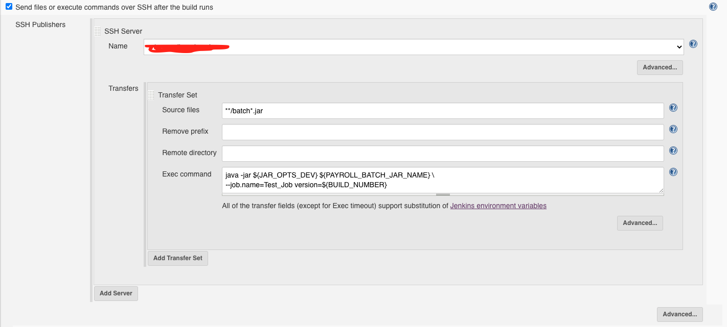 version 에 ${BUILD_NUMBER}을 넣는 이유는 배치 기동 시 동일한 파라미터가 입력 시 실행되지 않기 때문에 파라미터값에 유니크한 값을 설정한다.