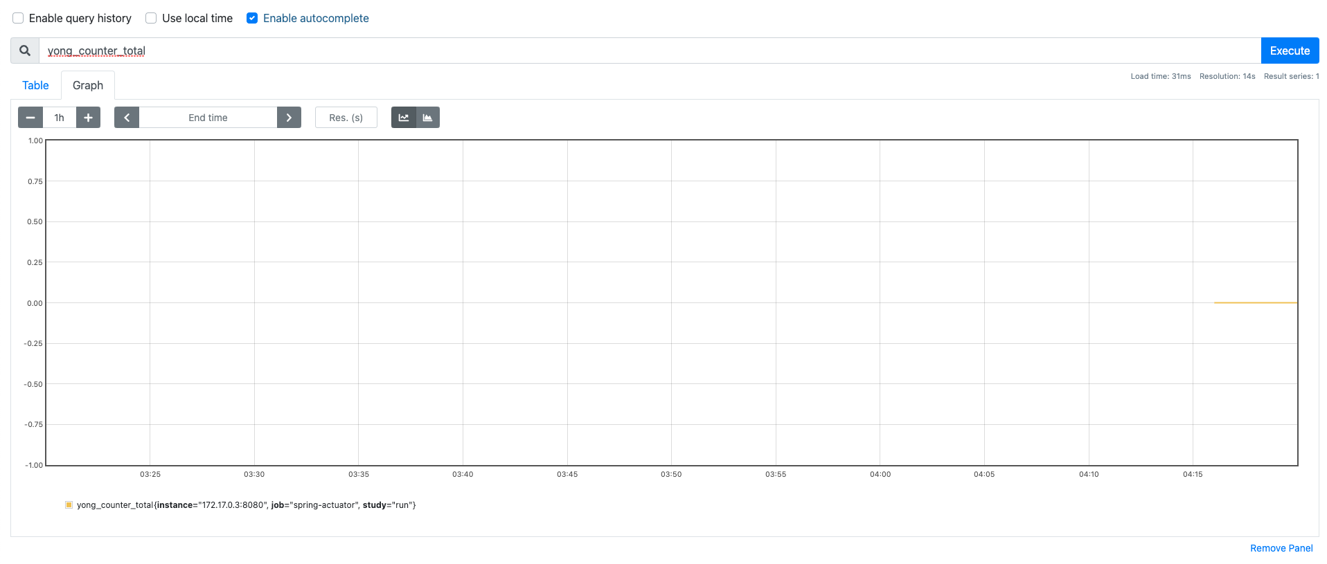 # A scrape configuration containing exactly one endpoint to scrape: