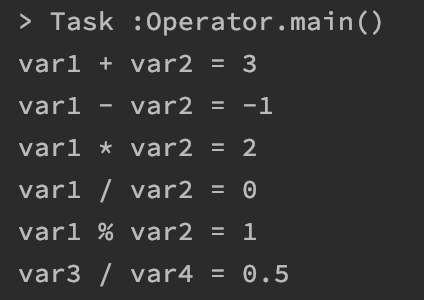 System.out.println("var3 / var4 = " + (var3 / var4));