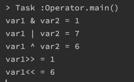 System.out.println("var1 | var2 = " + (var1 | var2));