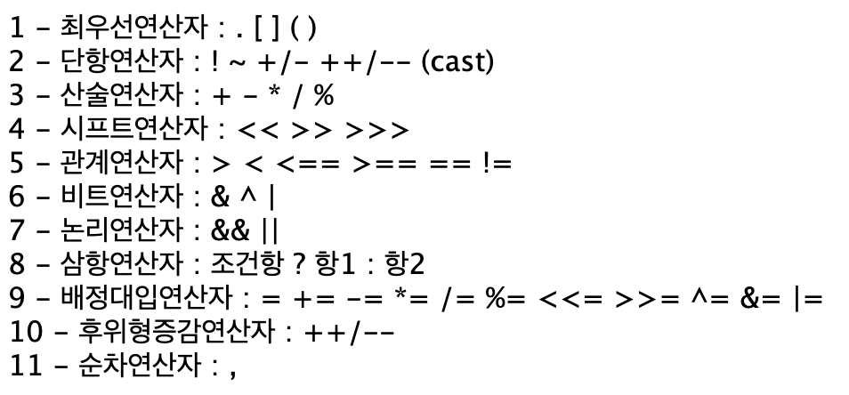 | 피연산자 ( operand ) | 연산에 대상이되는 데이터 |