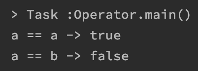 System.out.println("a == b -> " + (a == "b" ? true : false));