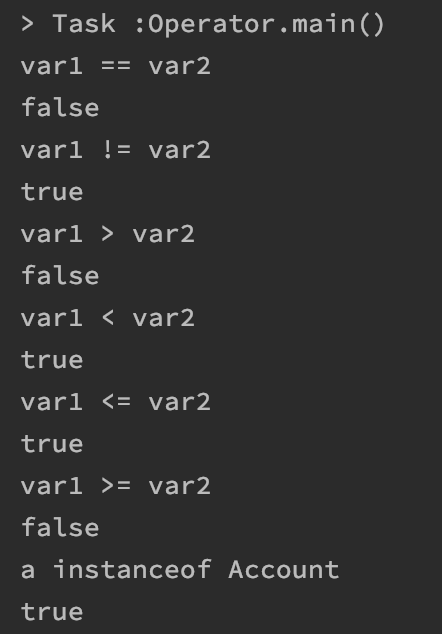| instanceod | 양 쪽 객체의 타입이 같으면 true, 다르면 false |