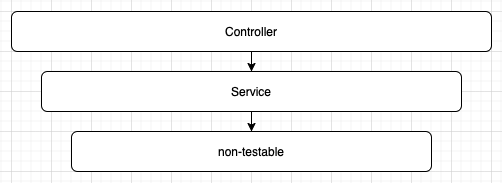 만약에 아래와 같은 구조의 로직을 테스트 코드로 작성하려고 합니다. 하지만 가장 하위에서 non-testable의 영억을 호출하는 부분이 있다고 가정합니다. 그럼 이 테스트 코드는 전체가 non-testable이 됩니다.